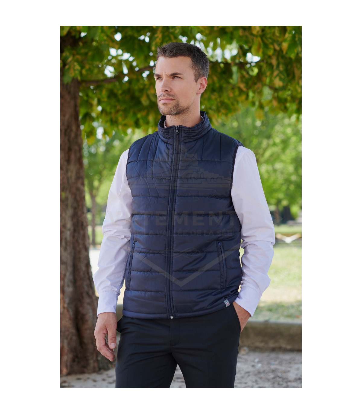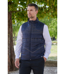 Bodywarmer / Gilet sans manches professionnel matelassé, 2 poches zippées, poches intérieures, cordon de serrage à la taille, emmanchures finition biais. Disponible en tailles S à 5XL, pour toutes les morphologies et décliné en 2 coloris, noir et bleu marine.